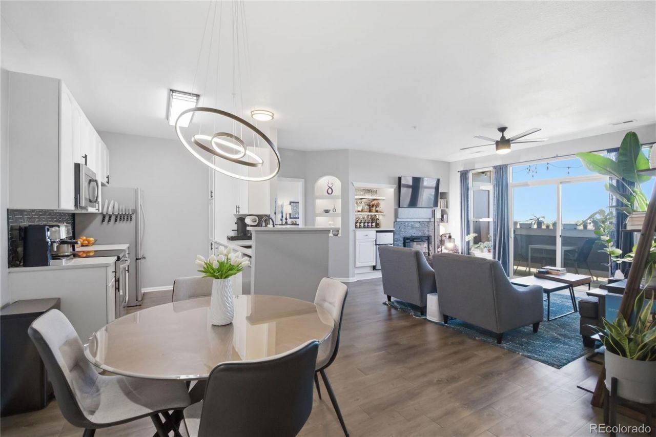 Welcome home to this beautifully updated 2-bedroom, 2-bath end-unit condo in a prime Aurora location near I-225 and 6th Avenue?making commuting a breeze!This light-filled second-floor unit features durable LVP flooring throughout?no carpet?and a bright, open layout thanks to its desirable end-unit placement. The updated kitchen showcases a modern backsplash and all-new stainless steel appliances, offering both style and functionality.The inviting family room is perfect for relaxing or entertaining, complete with a built-in mini bar and beverage fridge, plus a cozy electric fireplace that adds warmth and ambiance year-round.The spacious primary suite includes a walk-in closet and full ensuite bath. The secondary bedroom offers generous closet space and sits next to a second full bath?ideal for guests, roommates, or a home office. The flexible layout also makes renting the second bedroom an easy option.Enjoy in-unit laundry with washer and dryer included.A rare highlight is the detached one-car garage?perfect for parking and extra storage?plus two guest parking passes for added convenience.The community offers a pool, tennis courts, and pickleball, all just minutes from light rail and public transportation.If youve been searching for an updated, move-in ready condo in Aurora with great amenities and a garage?this is the one.