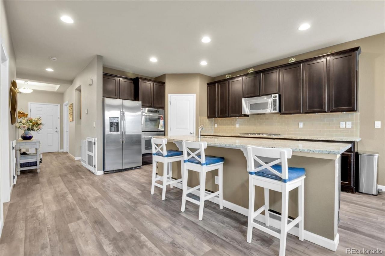 Brand New Listing with preferred lending incentives - call listing agent for details! Popular Salida model by Meritage Homes in North Creek Farms offering 3 bedrooms, 3 bathrooms, a main-floor office, and an upstairs loft in a spacious two-story floor plan designed for flexibility and everyday comfort. The open-concept main level creates an easy flow between the living, dining, and kitchen spaces, making it well suited for both daily living and entertaining. The kitchen features granite countertops, stainless steel appliances, double ovens, a center island, and abundant cabinet storage. Wood flooring adds warmth and character to the main level, while the living area includes a gas fireplace for added comfort and style. Upstairs, the spacious primary suite includes a 5-piece bath and provides a comfortable private retreat. Additional features include vaulted ceilings, central A/C, a covered front porch, fenced yard with patio, and a 3-car tandem garage offering excellent storage and parking flexibility. Conveniently located near neighborhood parks, schools, shopping, dining, and commuter access via York Street, this home offers a desirable floor plan in an established community with room to make it your own.