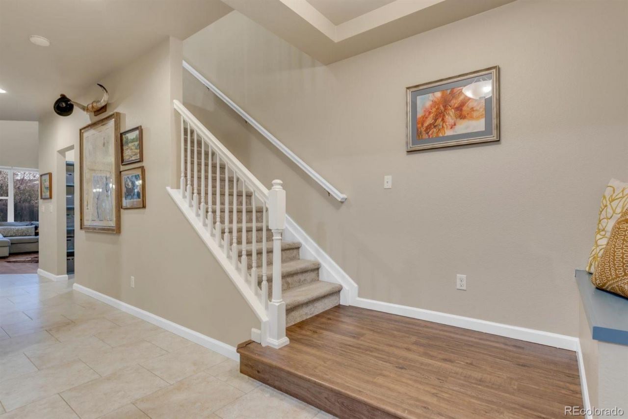 Stunning North Creek Farms home meticulously maintained and fantastic location that is convenient to Denver, Boulder and Ft. Collins. Recently finished lower level (2021) featuring a kitchenette, bedroom, theater room, full bath and oversized storage ? perfect for guests or rental income. Main level features a perfect work-from-home office, mudroom with built in storage, half bath, large living room with vaulted ceilings, new laminate flooring, eat-in kitchen, large pantry and plenty of cabinets for the gourmet cook in the family! Radon mitigation and sump pump provide peace of mind for the conscientious homeowner. Home also features full house window tinting and solar for energy efficiency. Gorgeous primary retreat and 5-pc bath with huge walk in closet are a perfect private getaway. Convenient upstairs laundry and 3 more large bedrooms provide ample space for larger families. 3-car tandem garage add everyday convenience for cars, tools and toys. Beautiful backyard with mature landscaping, patio and wrap-around walkway with dedicated dog run/garden is a great spot for gatherings with family and friends. This neighborhood is a prime location providing trails, parks and local amenities just steps away! Downtown Denver is just minutes down the highway. Dont miss this exceptional property waiting just for you!