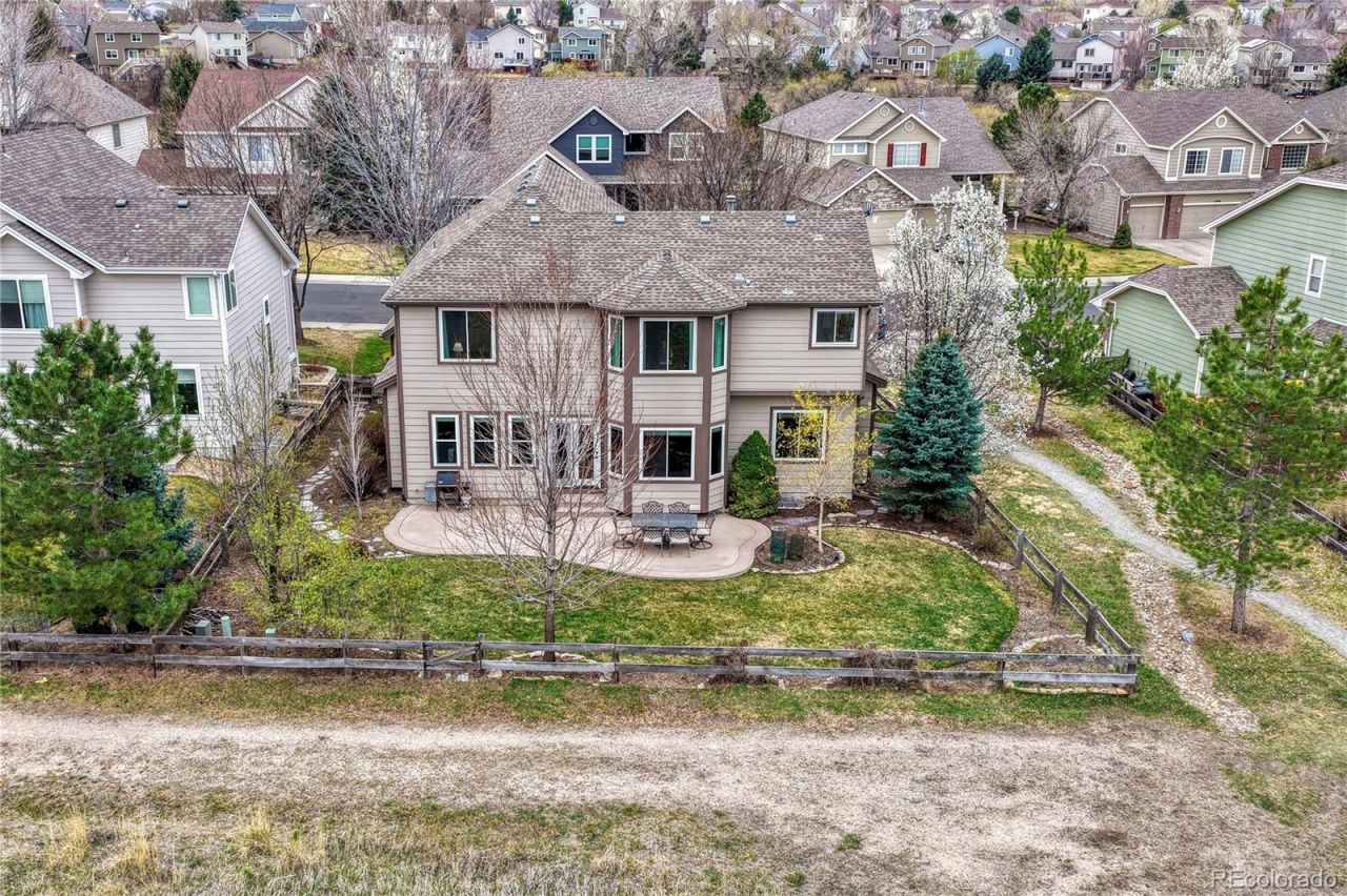 Sophisticated design meets comfortable living in this beautifully updated Canterberry home siding to a trail and backing to open space with miles of paths just outside your door. 4 BR, 3 BA, 3 CAR with a thoughtful, flowing layout designed for both everyday comfort and elevated entertaining. Impeccably maintained with standout details including custom stair railings, fresh neutral paint, and rich 5 hickory plank flooring across the main level. Updates: Patio door and several windows (2023), exterior paint (2022). KITCHEN: Well-appointed with cherry cabinetry, under/over cabinet lighting, granite with chisel edge, center island, pantry, reverse osmosis, newer refrigerator (2023) and microwave (2024), plus a sunlit eat-in area overlooking open space. DINING/LIVING: Light and bright spaces with soaring ceilings and elevated lighting. FAMILY ROOM: Comfortable gathering space with gas fireplace and built-ins. MAIN FLOOR OFFICE: Private with French doors and cove ceiling with rope lighting. MAIN FLOOR BATH: Convenient 3/4 bath with tile shower. PRIMARY SUITE: Light-filled and tranquil with a bay window creating a true retreat. Spa-inspired, fully renovated bath with quartz counters, frameless glass shower with bench and multiple showerheads, and barn door entry to a spacious walk-in closet. SECONDARY BEDROOMS/BATH: Three additional bedrooms and a fully renovated full bath complete the upper level. LAUNDRY: Generously sized with extensive cabinetry and functional workspace. OUTDOOR: Professionally landscaped yard with mature trees, expansive concrete patio, and seamless access to open space and trails. COMMUNITY: Highly desirable Canterberry with low HOA including pool, tennis, trash/recycling and an extensive trail system with convenient access to downtown Parker. HOME EXTRAS: Quiet street, south-facing driveway for easy snow melt, charming front porch, designer lighting, water softener. Step outside, hit the trail, and come home to a space that just feels right.